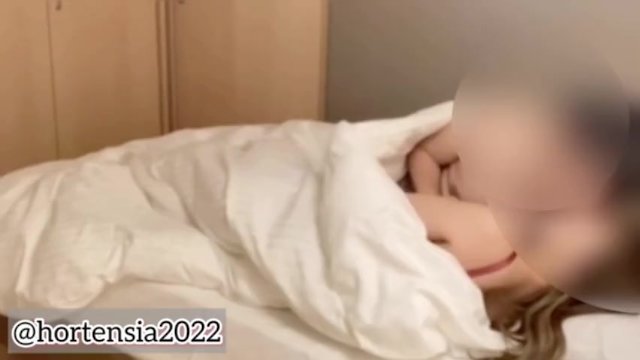 Japanese amateur couple having romantic creampie sex at a hotel while traveling
